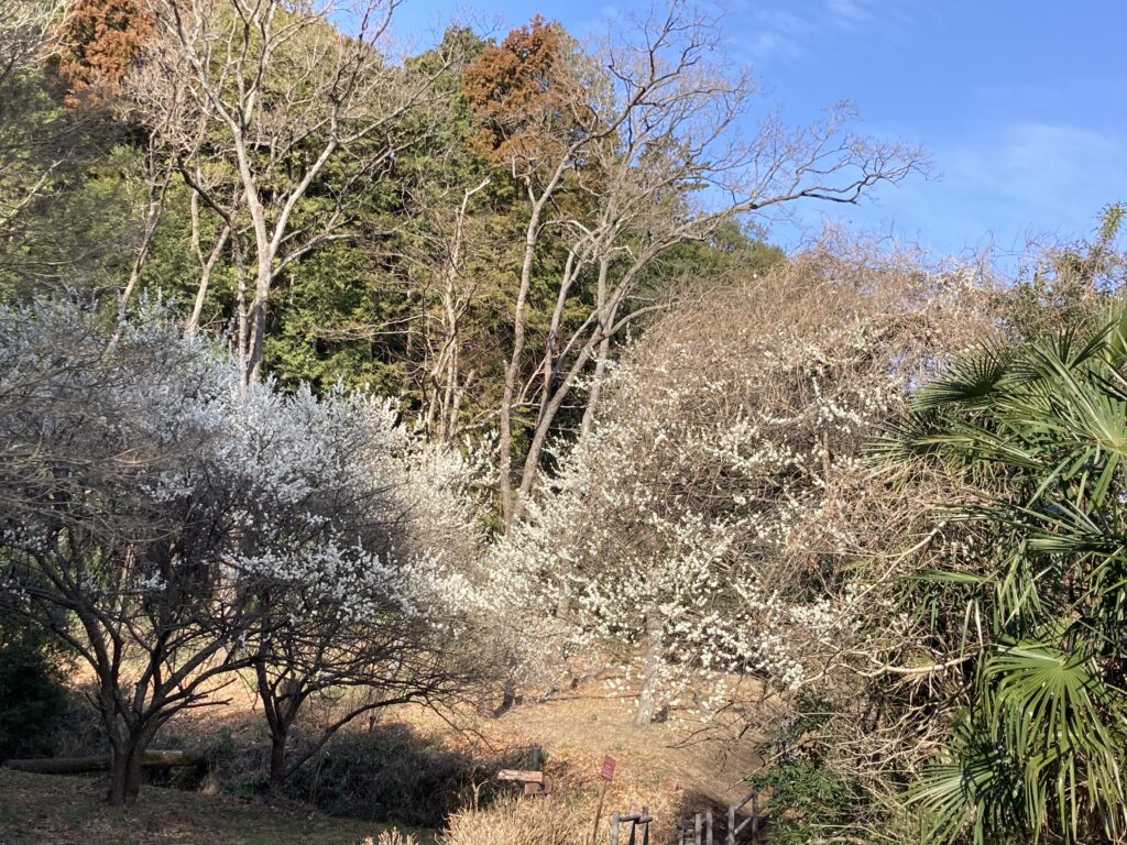 この森では3月、4月はウグイスの鳴き声と共に梅、山桜、5月は竹の成長、6月は紫陽花、7月は山百合、12月は鮮やかな紅葉、1月、2月は赤とピンクのツバキが見れます。